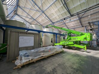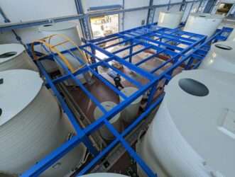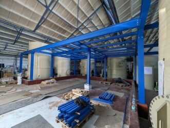 Bühne/ Zwischenebene BGH Lugau – Neubau einer Arbeitsbühne mit Gitterrostbelag im Bestand