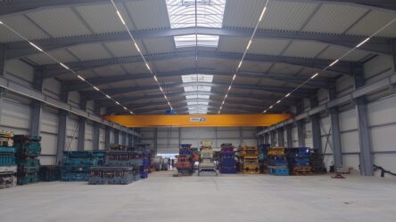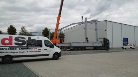 Hallenerweiterung – 90t Stahltragwerk mit Kranbahn für einen 30t ABUS Kran freispannend über 33m