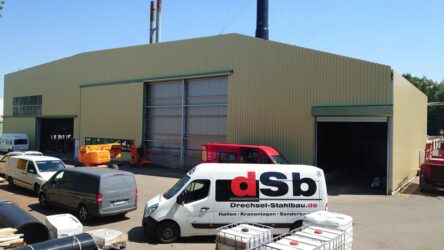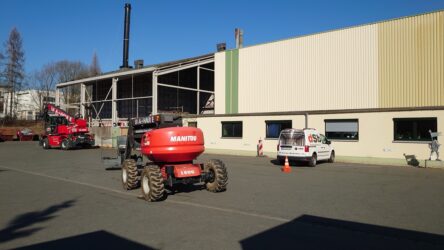 1500m² neue Fassadebekleidung aus Trapezblech, Austausch aller Fenster und Tore
